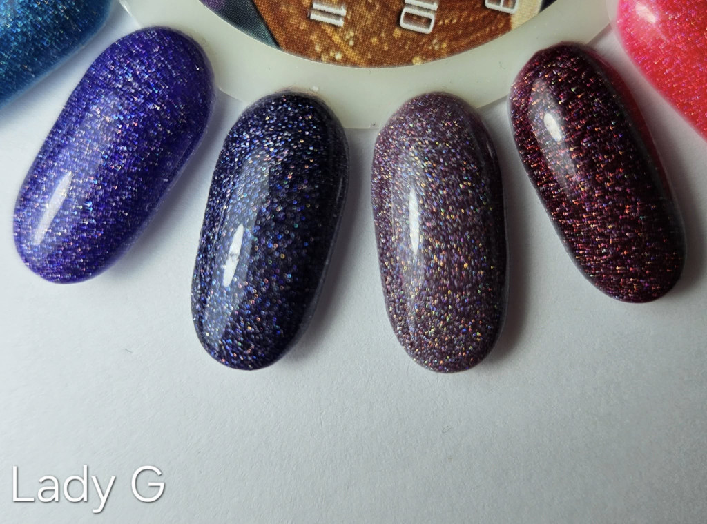 Lady G gelový lak je středně pigmentovaný, 3krokový a středně hustý gelový lak, který ve dvou vrstvách poskytuje vysokou odolnost proti opotřebení. Použitím potěšíte milovníky třpytivých nehtů.