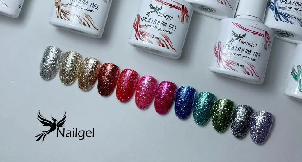Gellak Platinum od značky Nailgel dodává nehtům tvých klientů speciální lesk. Tyto gellaky jsou kovově zářivě lesklé a mají vysokou odolnost proti otlakům. Díky kovovému efektu působí tyto gellaky jako by byly pokryté drobnými chromovými fóliemi.
