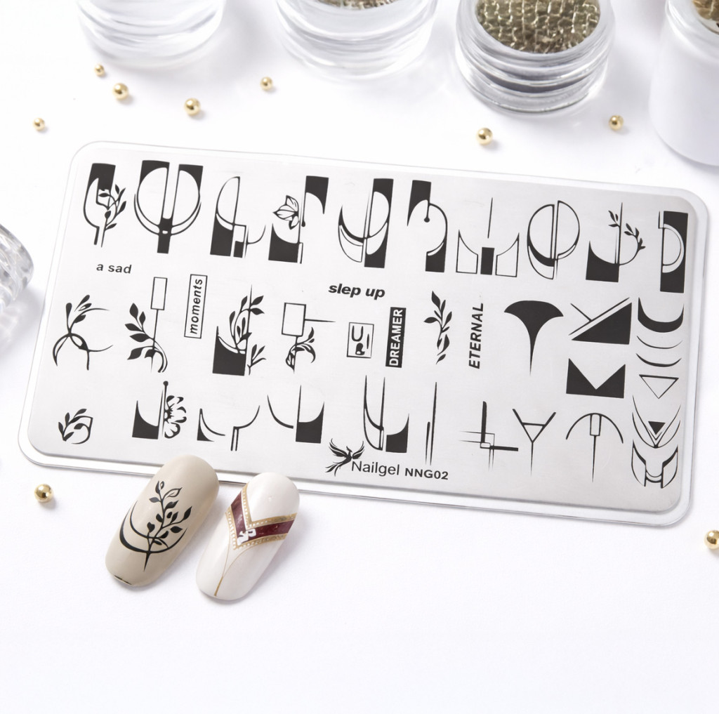 Razítkovací destičky Nailgel jsou profesionální nástroje vyrobené z kvalitní nerezové oceli, které umožňují rychlé, přesné a opakovatelné zdobení nehtů. Vzory na destičkách jsou proporčně vyvážené, detailní a přenášejí se na nehet s ostrými konturami, takže s nimi snadno vytvoříš moderní, čistý nebo i extravagantní nail art.